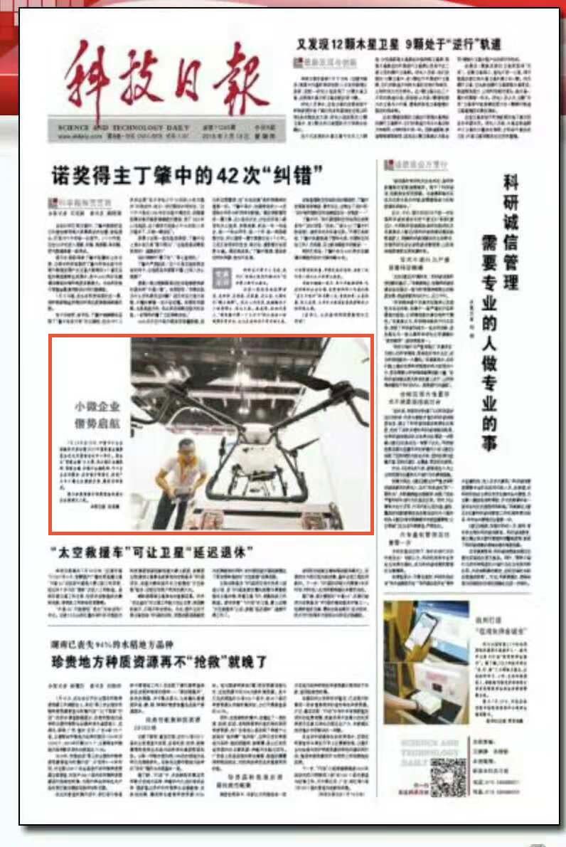 ▲《科技日报》版面上的常锋D410农业植保机